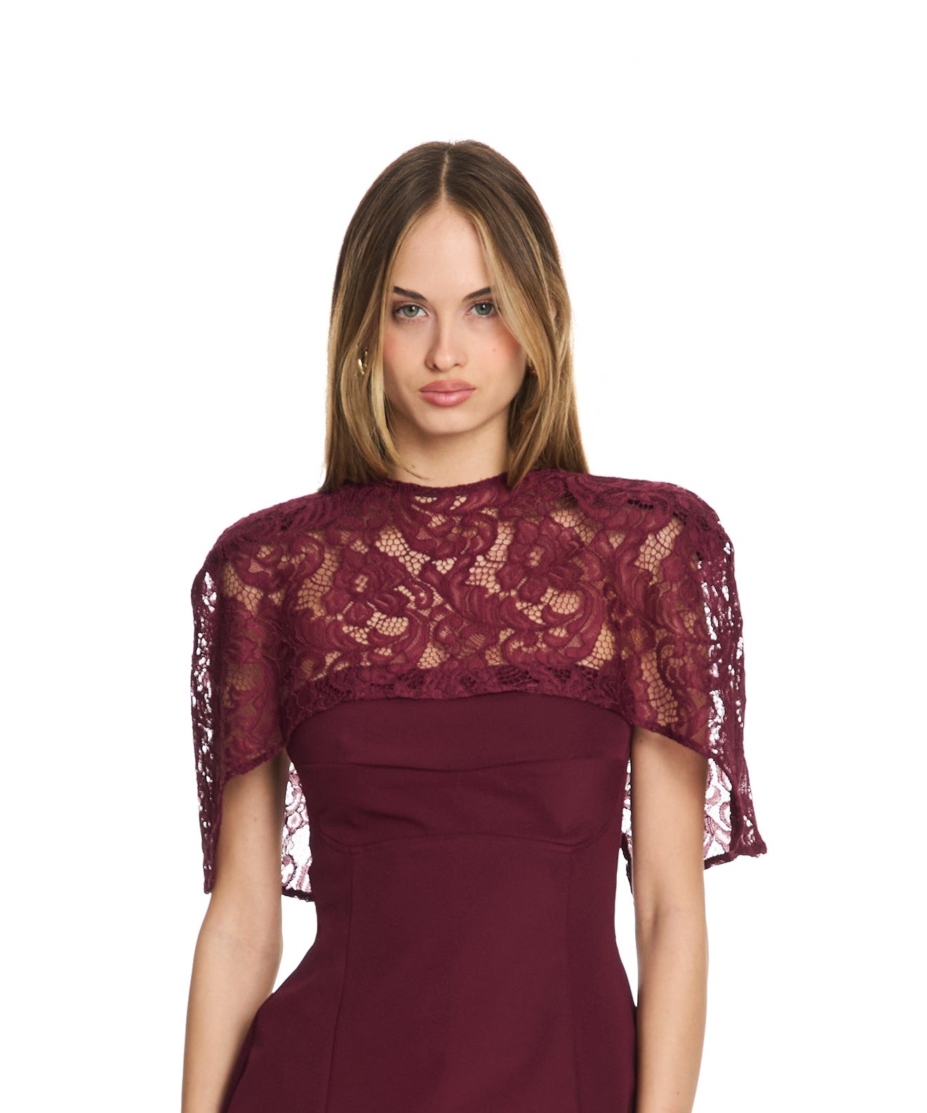 Natasha Burgundy Lace Cape