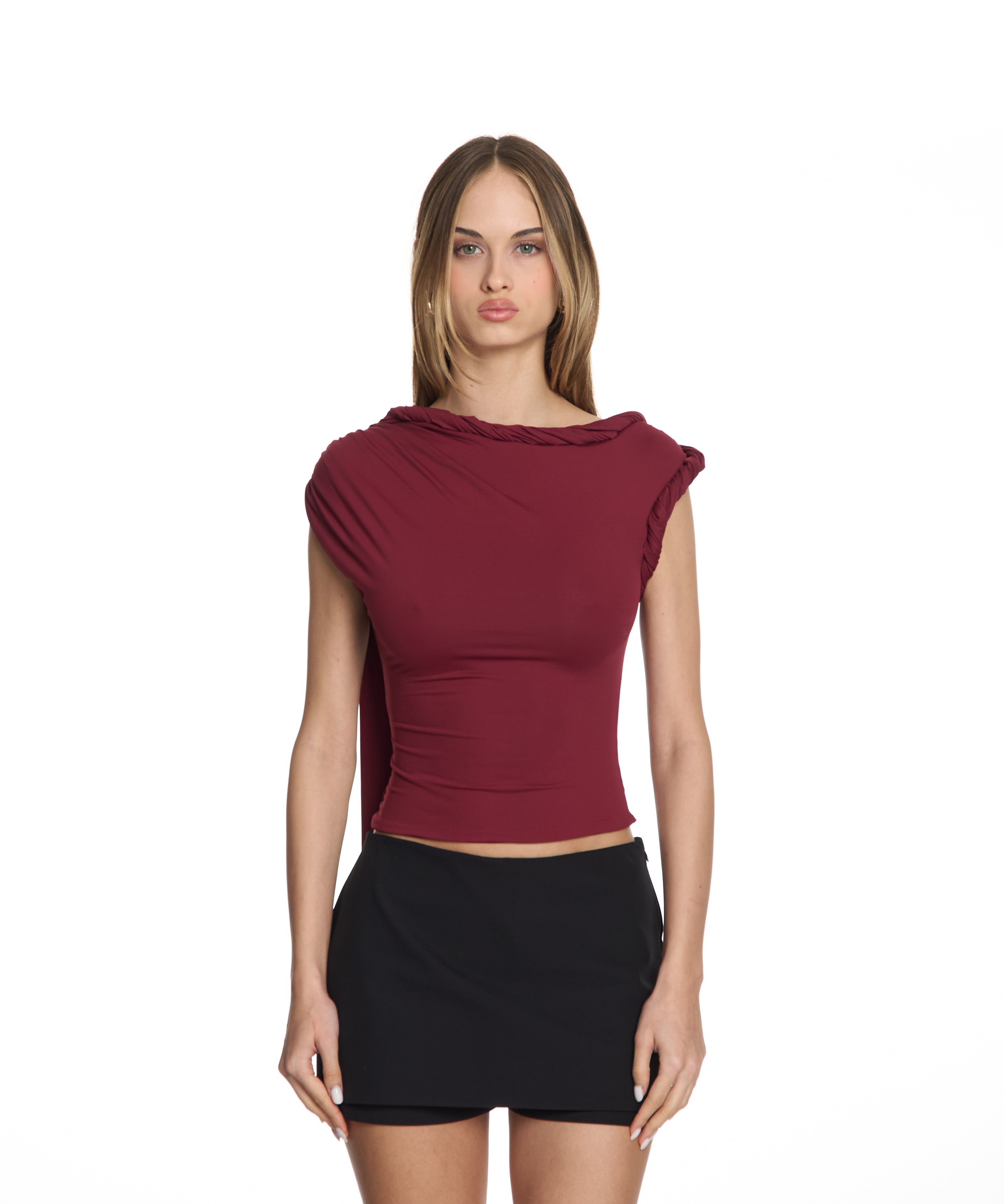 Scarlet Burgundy Cape Top
