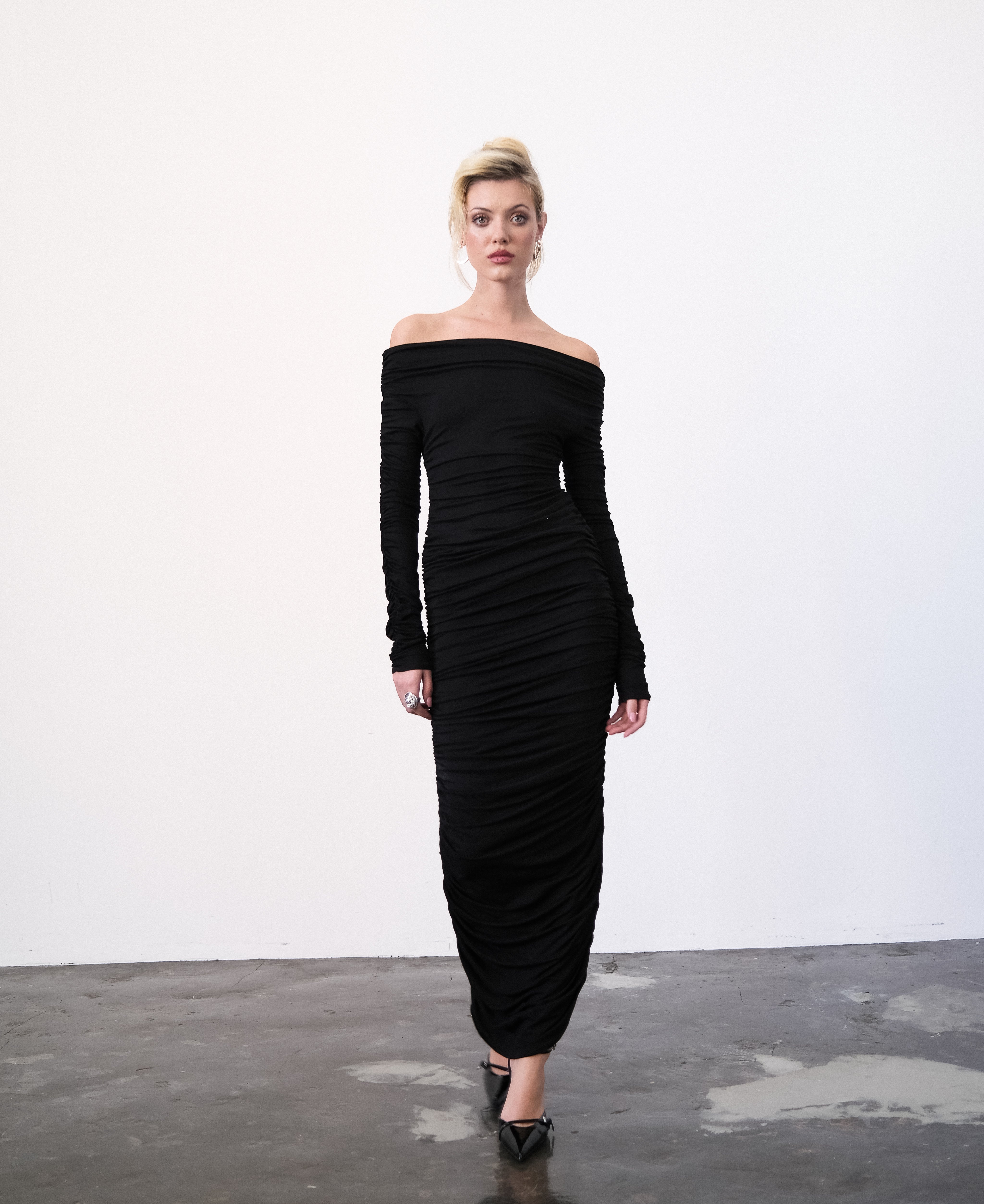 Adelina Draped Black Dress