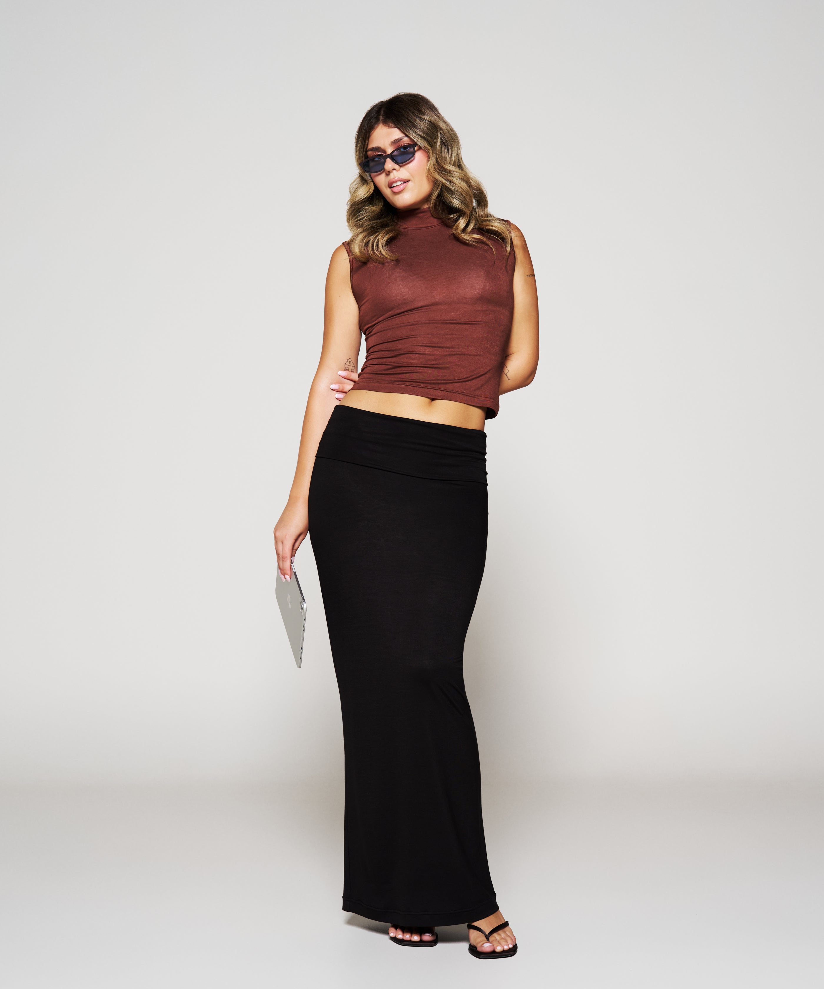 Second Skin Black Foldover Skirt