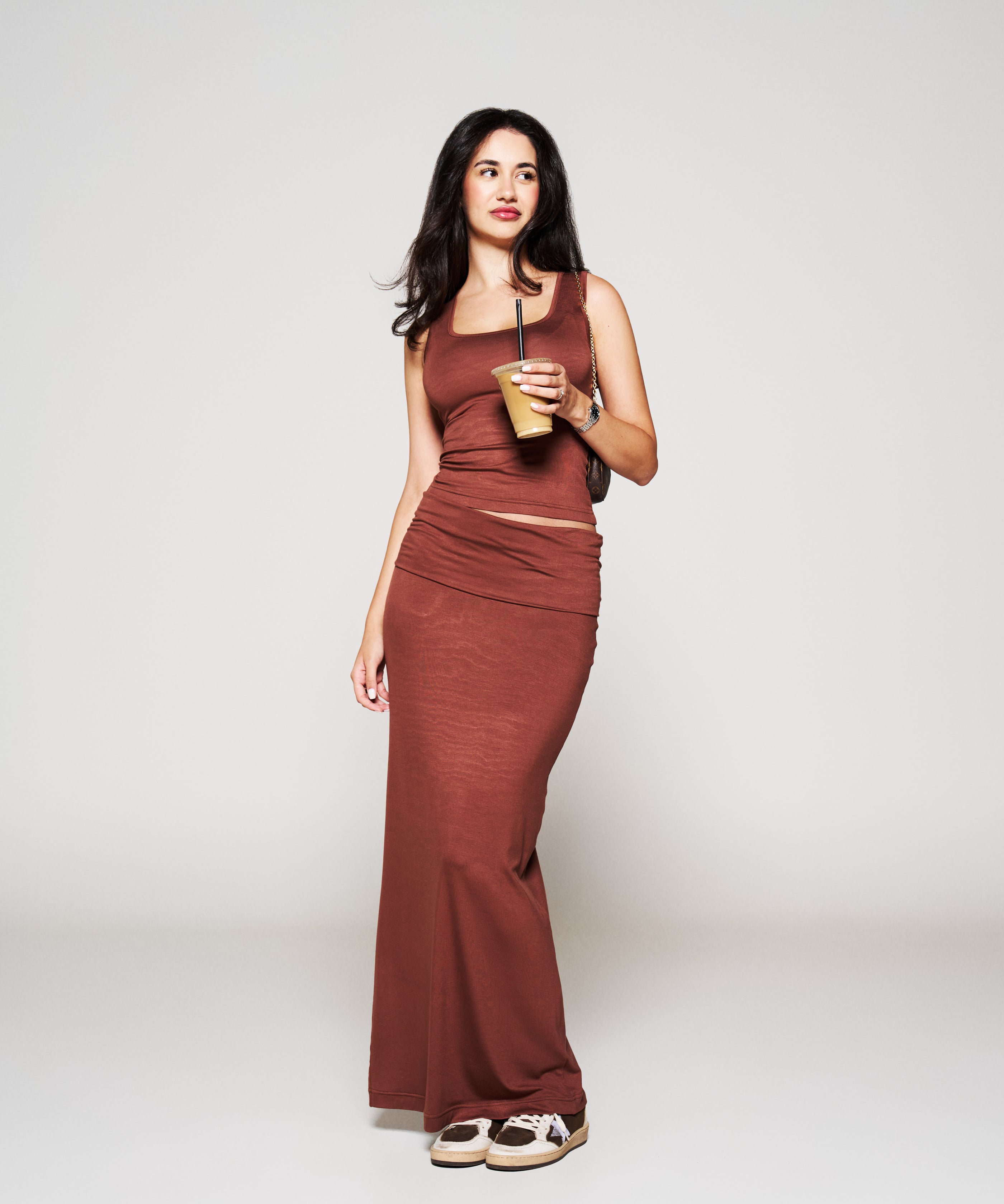 Silk Soft Brown Foldover Skirt