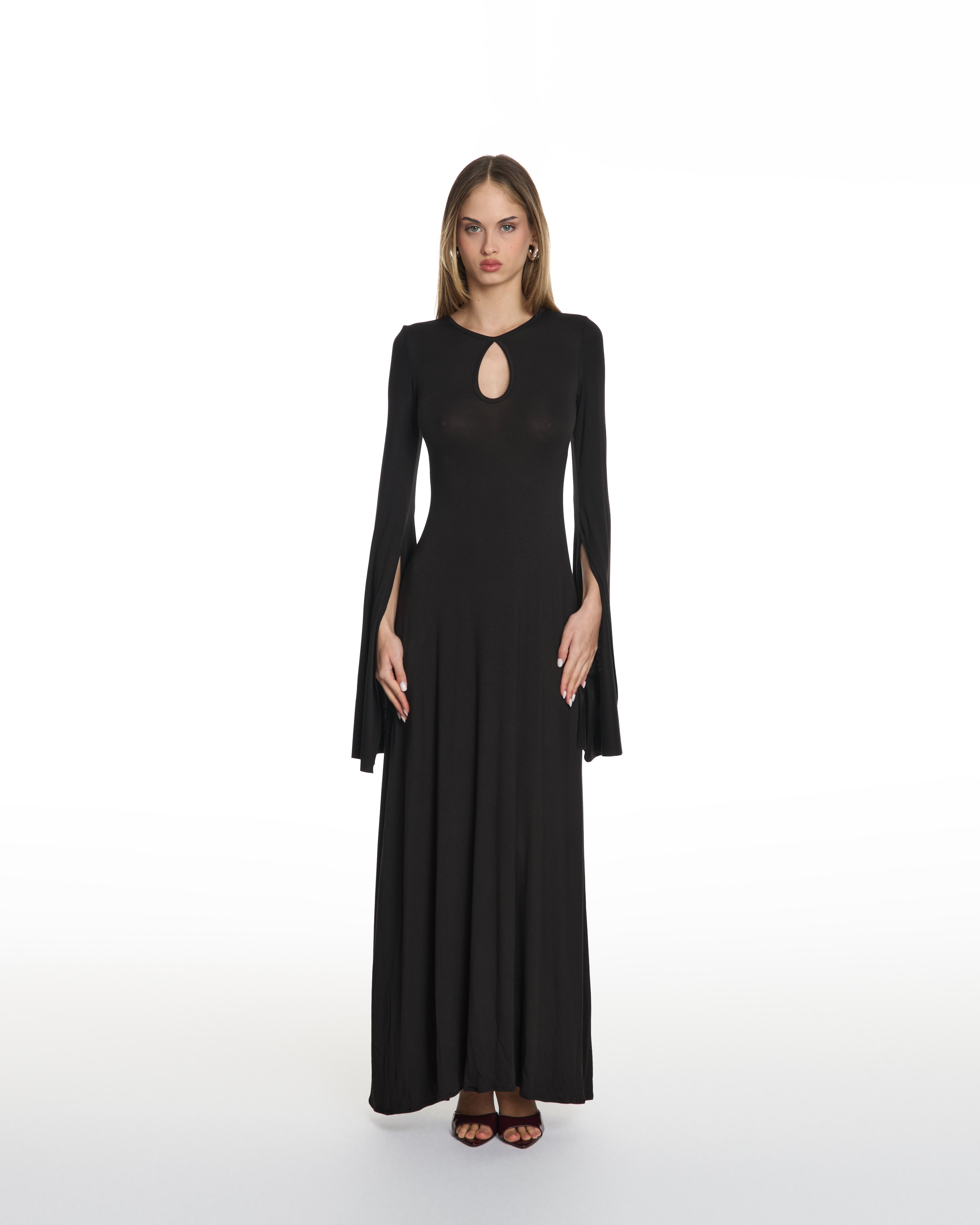 • Fluid maxi dress with a sculpting, minimalist silhouette