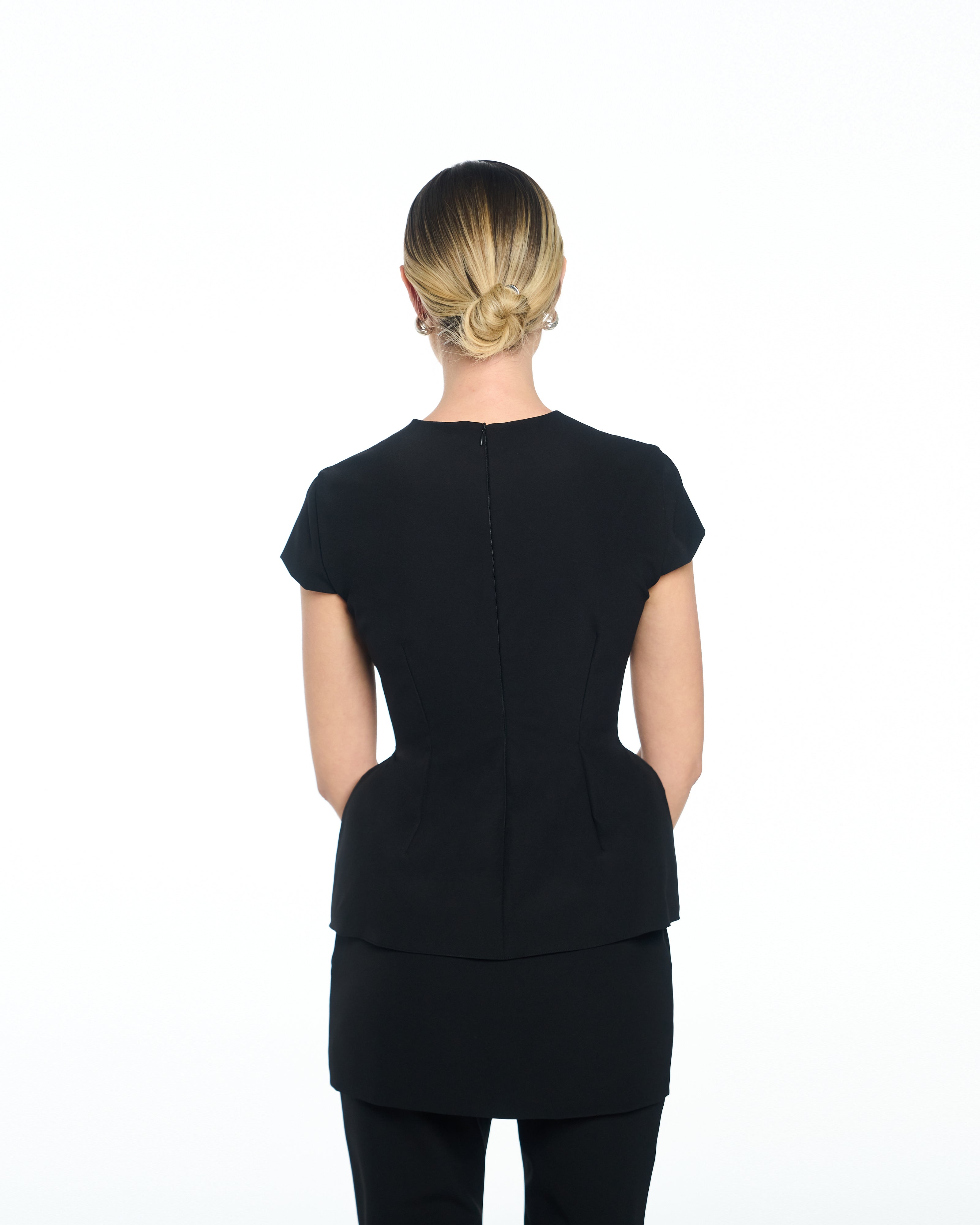 • Subtle peplum effect for balanced proportions