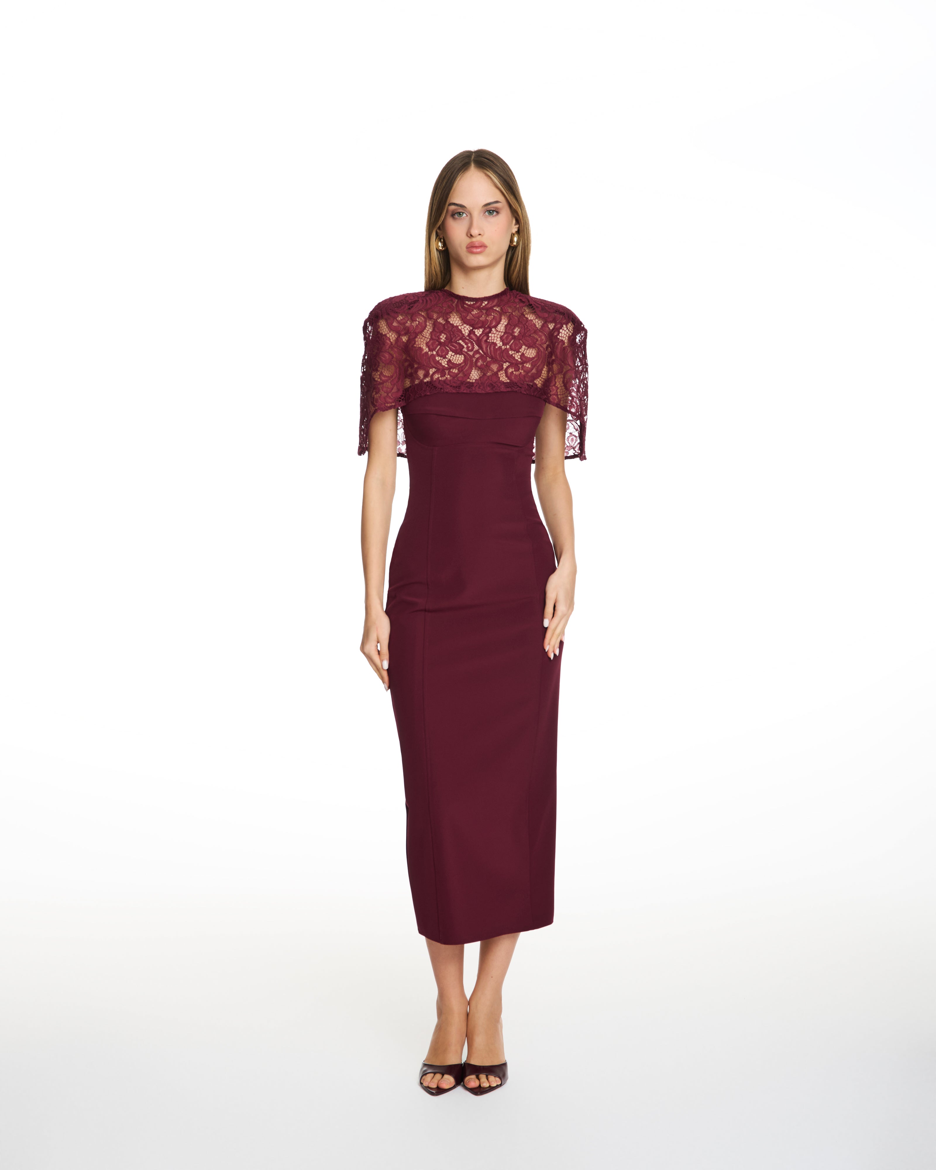 Margot Burgundy Lace Midi Dress