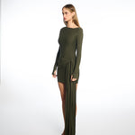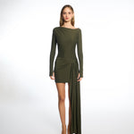 Tina Long-Sleeves Mini Dress in Moss Green